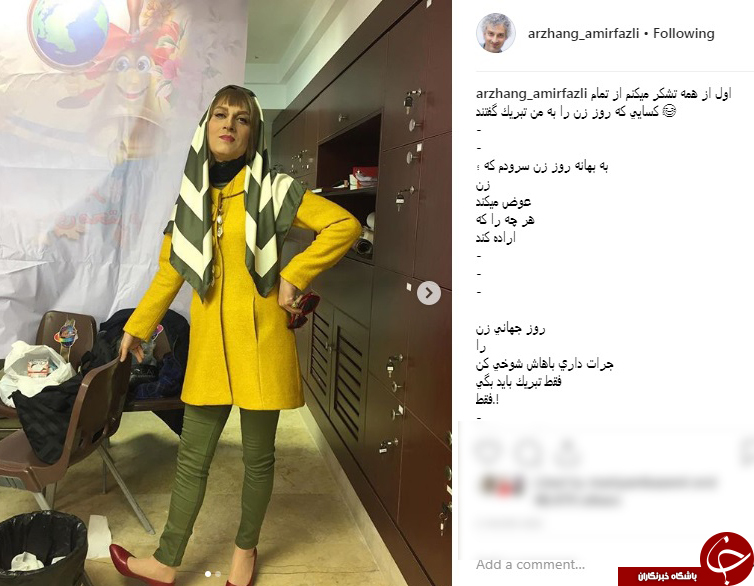 امیرفضلی در اینستاگرام نوشت: اول از همه تشکر میکنم از تمام کسایی که روز زن را به من تبریک گفتند، به بهانه روز زن سرودم که ؛ زن عوض میکند هر چه را که اراده کند.روز جهانی زن راجرات داری باهاش شوخی کن فقط تبریک باید بگی، فقط!